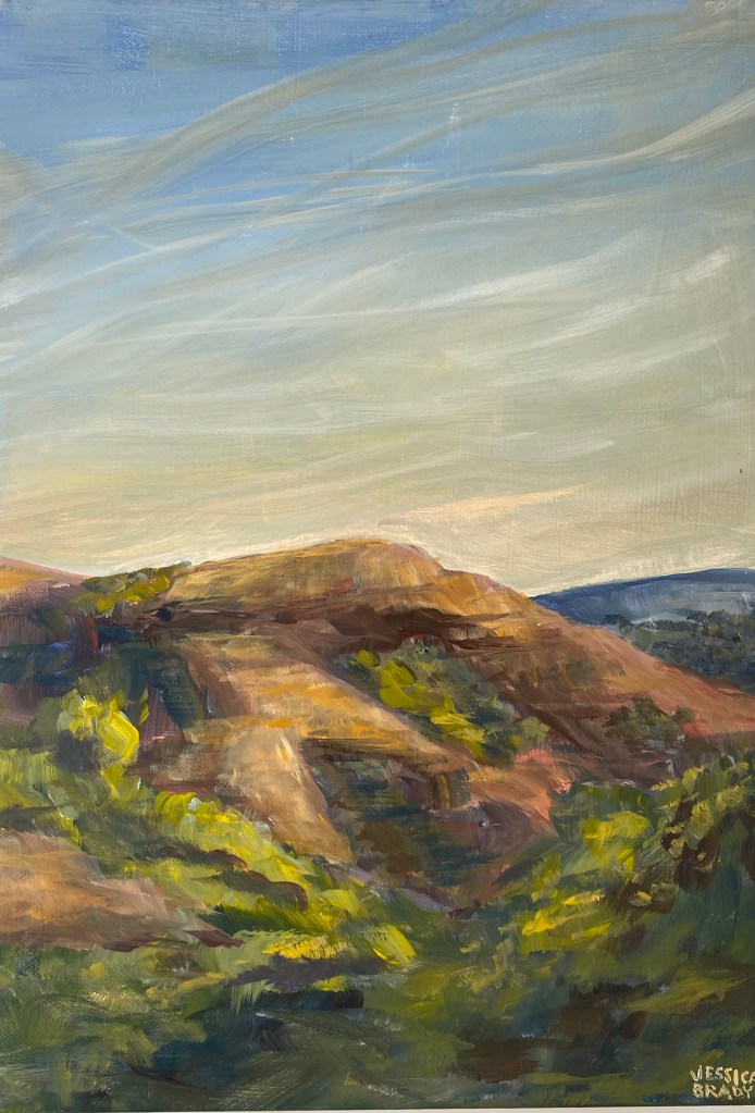 10”x14”x1.5″ Acrylic on repurposed wrapped canvas. Unframed original. Available.